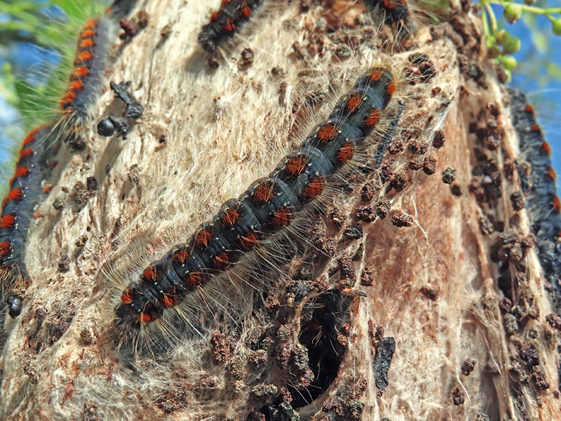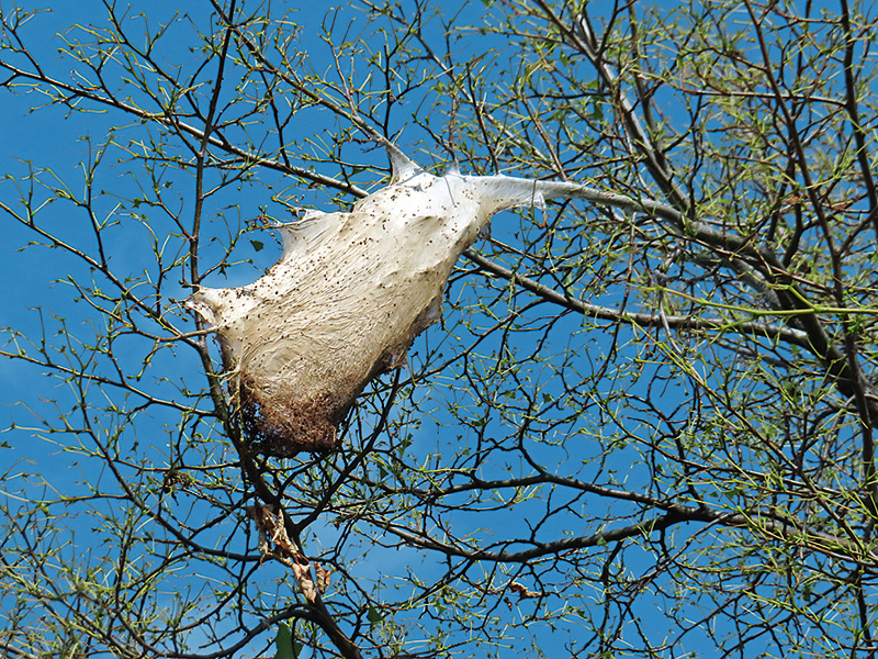 Autor popisuje nález housenek u nás poměrně vzácného bourovce březového (Eriogaster lanestris) na Kladensku. Housenky motýla tvoří hedvábná hnízda, z kterých se vydávají za potravou. Napadají více druhů stromů a keřů, v tomto případě lípu srdčitou (Tilia cordata). Stromy, ač byly zcela bez listí, nebyly motýlem nijak ohroženy, protože se po několika měsících opět olistily.