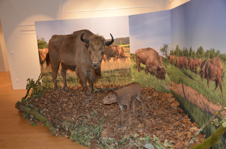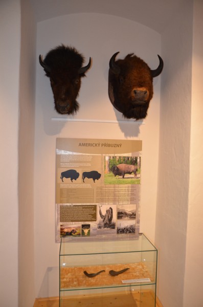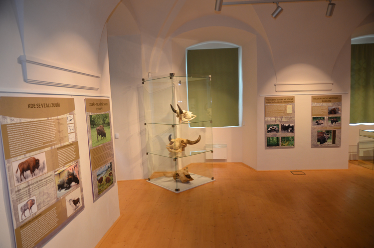 Ve čtyřech výstavních sálech v přízemí loveckého zámku Ohrada v Hluboké nad Vltavou čeká návštěvníky rozsáhlý soubor unikátních exponátů, představující evoluční historii a biologii tohoto druhu i jeho vztah k lidem a jeho proměny v čase, kdy se ze zubra jako lovné zvěře králů postupně stává v přírodě vyhubený a polozapomenutý druh a nakonec prostřednictvím chovu v zajetí a cílené ochrany jeden ze symbolů obnovy původní přírody v Evropě. Zajímavý je například kontrast ve ztvárnění tohoto impozantního kopytníka v historických materiálech a moderní tvorbě českých umělců. Podívat se můžete na dermoplastický preparát zubří samice a telete v životní velikosti, kůži dospělého býka i přesné reprodukce slavných jeskynních maleb bizonů pravěkých, možných předků zubrů, z jeskyní Lascaux, Niaux či Altamira. Je možné osahat si srst zubra i jeho příbuzného bizona, nebo shlédnout dokumentární filmy věnované chovu a návratu zubrů do přírody. Expozici doprovázejí barevné informační tabule, na kterých se mimo jiné dočtete, kolik zubrů a kde se u nás chová, kdo byl zubří prapředek i co je zubří tráva a na co se používá. Sekci věnované ochraně zubrů dominují velkoformátové fotografie Vojtěcha Lukáše.