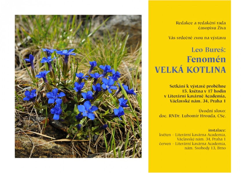 Přírodní zajímavosti Velké kotliny v Jeseníkách popisoval seriál ve většině čísel loňského ročníku Živy. Hlavní autor seriálu – Leo Bureš během mnoha let výzkumů nafotografoval ve Velké kotlině několik desítek tisíc fotografií. Kromě odborných fotek botanických vzácností jsou mezi nimi i mnohé zajímavé záběry atraktivních skal a vodopádů i neobvyklých scenerií. Na výstavě budou hlavně fotografie, které už se do seriálu o Velké kotlině nevešly.