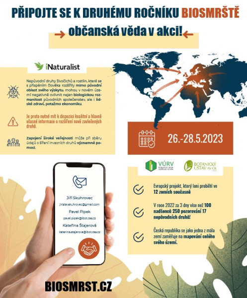 Již příští pátek odstartuje další ročník projektu občanské vědy, který má za cíl zmapovat nepůvodní druhy živočichů a rostlin v České republice. Biosmršť proběhne od pátku 26. do neděle 28. května a zapojit se do ní může úplně každý, kdo přispěje záznamem o svém pozorování do mobilní aplikace (např. iNaturalist). Druhý ročník projektu občanské vědy pomůže získat cenné informace o šíření i výskytu druhů, které by se zanedlouho mohly stát hrozbou.