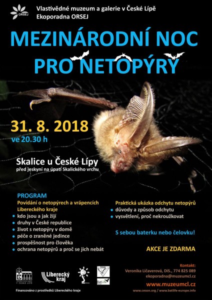 Ekoporadna ORSEJ při Vlastivědném muzeu a galerii v České Lípě se již po dvaadvacáté přidává k „Mezinárodní noci pro netopýry“ s nočním přírodovědným programem o netopýrech a vrápencích České republiky.