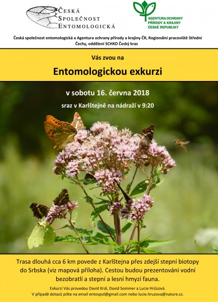 Česká společnost entomologická a Agentura ochrany přírody a krajiny ČR, Regionální pracoviště Střední Čechy, oddělení SCHKO Český kras Vás zvou na Entomologickou exkurzi v sobotu 16. června 2018