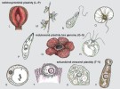 Přehled zástupců eukaryot s redukovanými plastidy. Nefotosyntetické plastidy: L – Hydnora visseri, parazitická rostlina z čeledi Hydnoraceae (pepřokvěté – Piperales) vyskytující se v jižní Africe, její jedinou nadzemní částí je červený květ tvořený třemi masitými laloky, lákající k opylení brouky; M – sklenobýl bezlistý (Epipogium aphyllum), orchidej parazitující mykorhizní sítě jiných rostlin a hub, nemá listy a její květy jsou bledé a poloprůhledné; vyskytuje se napříč Eurasií, včetně několika lokalit v České republice; N – Euglena longa, nefotosyntetické krásnoočko blízce příbuzné krásnoočku štíhlému, žije volně a živí se organickými látkami z prostředí; O – svítilka třpytivá (Noctiluca scintillans), mořská obrněnka vyskytující se po celém světě, živí se bakteriemi, jinými prvoky a dokonce rybími jikrami, má specializované organely zvané scintilozomy, díky nimž je schopná bioluminiscence – při podráždění modře svítí; P – zimnička tropická (Plasmodium falciparum), výtrusovec způsobující malárii, na niž ročně umírají stovky tisíc lidí, na obr. stadium zvané sporozoit, které se do lidského těla dostane po bodnutí infikovaným komárem, proniká do jaterních buněk a do červených krvinek, v nichž se množí. Redukované plastidy bez genomu: Q – raflézie Arnoldova (Rafflesia arnoldii) roste v deštných pralesích na Sumatře a Borneu, kde parazituje na liánách; většinu jejího těla tvoří až 1 m široký a 10 kg vážící květ, který barvou i zápachem napodobuje mršinu a tím láká opylovače (mouchy a mrchožravé brouky); R – Polytomella parva, zelená řasa, která je zelená pouze svým taxonomickým zařazením, ve skutečnosti bezbarvá a živí se organickými kyselinami, alkoholy a jednoduchými cukry rozpuštěnými ve vodě; S – Perkinsus marinus, příbuzný obrněnek, napadá ústřice, pro něž je silně patogenní, na obr. stadium trofozoit, které se množí v hostitelských buňkách, jeho typickým znakem je velká vakuola. Sekundárně ztracené plastidy: T – Cryptosporidium parvum, výtrusovec parazitující ve střevech savců, zde trofozoit, žijící na povrchu střevního epitelu, obrostlý mikroklky; U – Hematodinium perezi, obrněnka parazitující v hemolymfě krabů, stadium amébovitý trofont; V – hromadinka Gregarina cuneata je velký prvok, parazit ve střevech larev potemníka moučného (Tenebrio molitor). Orig. A. Novák Vanclová