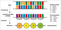 Tzv. ústřední dogma molekulární biologie, zavedené britským molekulárním biologem a fyzikem Francisem Crickem (1916–2004), definuje jednosměrný přenos genetické informace v buňkách z nukleových kyselin do bílkovin. Orig. H. Kupcová Skalníková