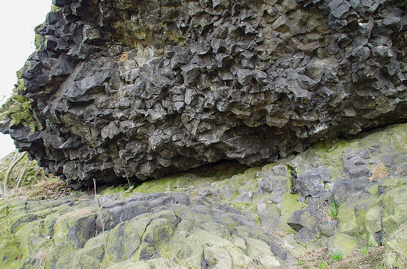 Říp Hill is a remnant of a lava lake that filled a crater formed by an explosive maar-diatreme eruption. Ascending magma interacted with groundwater, triggering a subsurface blast. The internal structure, including the inverted fan columnar jointing, indicates lava accumulation and cooling in the crater. Only the resistant core of the lava lake is now preserved.