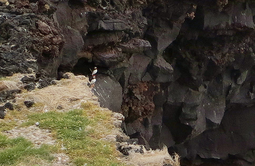 Papuchalci severní (Fratercula arctica) jsou občas také spatřeni ve strmých skalních útesech na Surtsey. Foto J. Grétarsdóttir