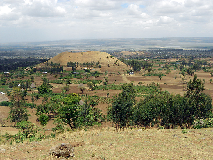 Řady drobných pyroklastických kuželů na dně Velké příkopové propadliny (kontinentálního riftu) v jižní Etiopii. Foto V. Rapprich