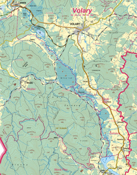 Úsek řeky Vltavy mezi Lenorou a Novou Pecí označovaný jako Vltavský luh na základní topografické mapě Českého úřadu zeměměřického a katastrálního (ČÚZK)