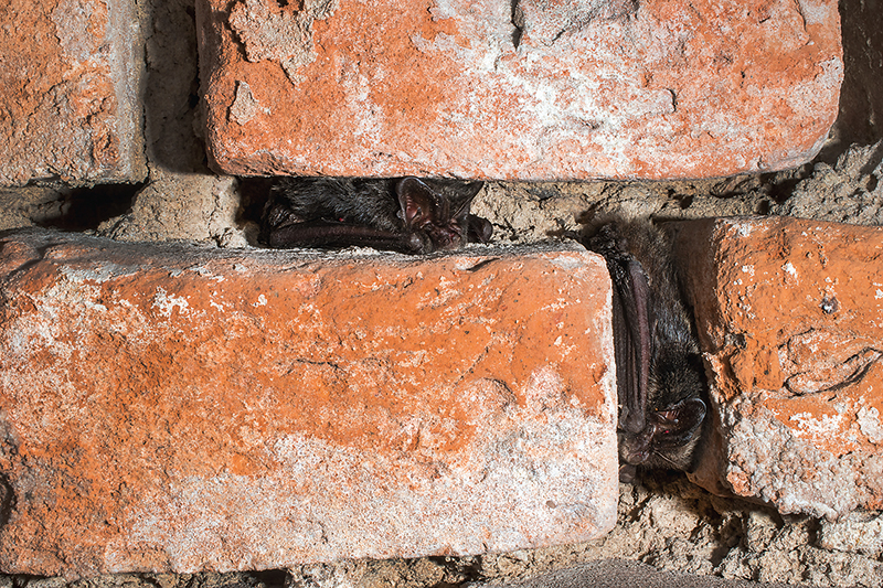 Zimující netopýři černí (Barbastella barbastellus), Valdštejnská lodžie v Jičíně (2021). Foto D. Horáček
