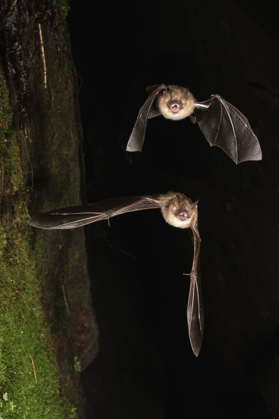Netopýři brvití (Myotis emarginatus) při podzimních přeletech u vchodu jeskyně U Hlavatice. Foto D. Horáček