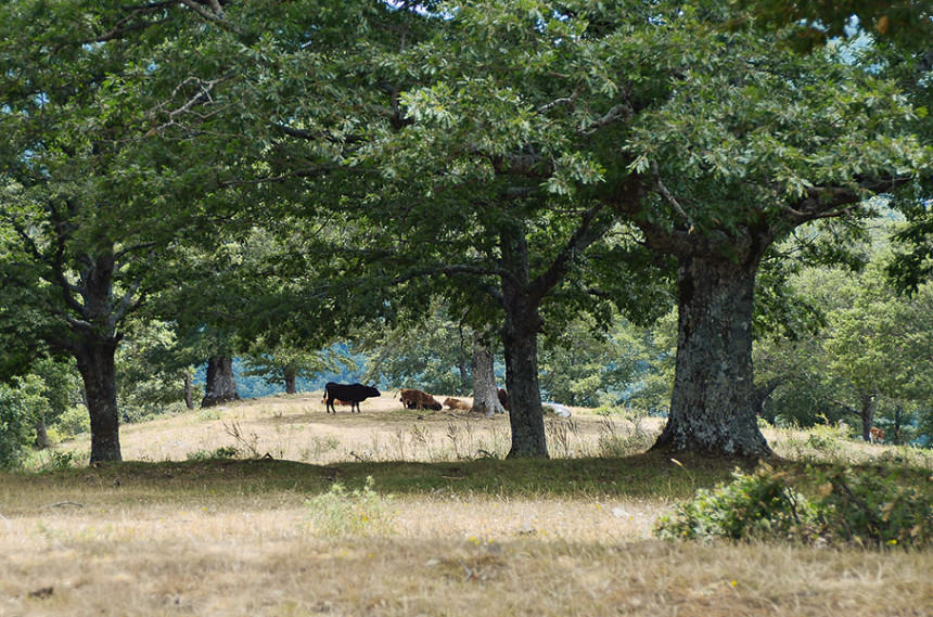 Pastva býložravců je sama o sobě disturbancí s nízkou intenzitou, ale se schopností pozvolna přetvářet lesní ekosystémy tím, že brání sukcesi bylinného, případně i keřového patra. Pastevní lesy se solitérními, často starými stromy jsou známé vysokou druhovou rozmanitostí rostlin, hmyzu a ptáků. Pastevní les u obce Cesarò, Sicílie. Foto D. Hauck