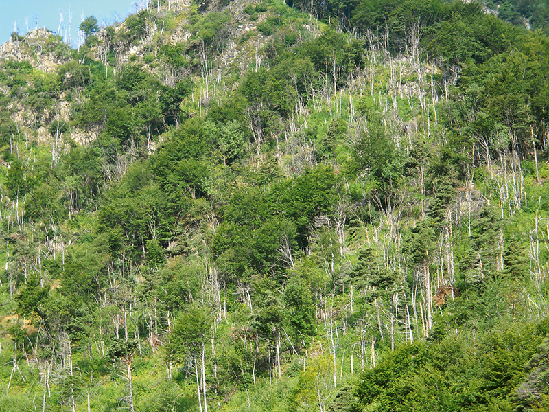 Disturbance postupným odumíráním stromů nastojato (např. suchem nebo v důsledku aktivity kůrovce) představuje pro celý ekosystém mírné až středně silné narušení. Podrost zůstává netknutý, takže se daří spíše stínomilným, pozdně sukcesním dřevinám, zde především jedli bělokoré (Abies alba). Národní přírodní rezervace Černé a Čertovo jezero Foto R. Bače