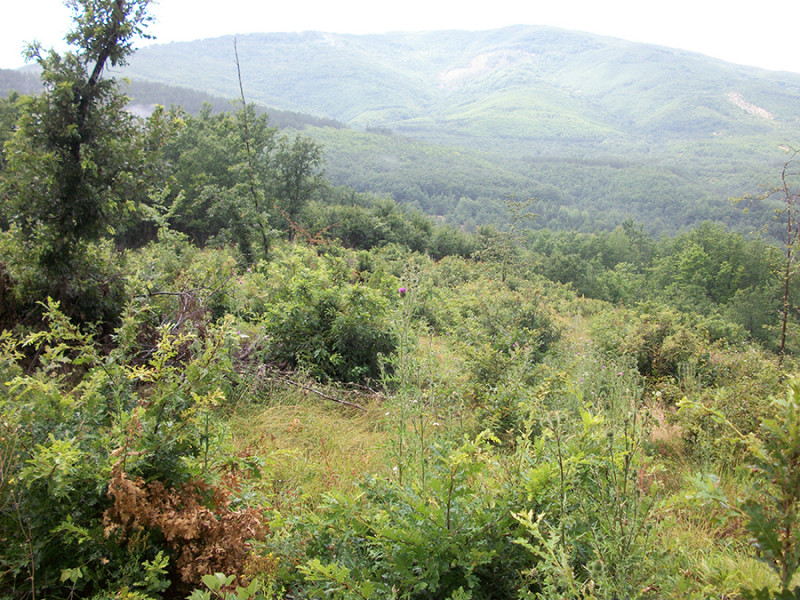 Obnovující se plocha nízkého lesa přibližně tři roky po vykácení, poblíž obce Slatino, Severní Makedonie. Zde dub jako hlavní dřevina výmladné etáže. Výmladkové lesy jsou známy pro svou vysokou diverzitu cévnatých rostlin a hmyzu, která je zajištěna tím, že k disturbancím dochází v krátkých intervalech (každých zhruba 40 let), takže se vedle sebe vyskytuje dostatek otevřených fází sukcese, stejně jako ty pozdější stinné. V důsledku změny hospodaření ale výmladkové lesy ze střední Evropy prakticky zmizely. Foto P. Šebek