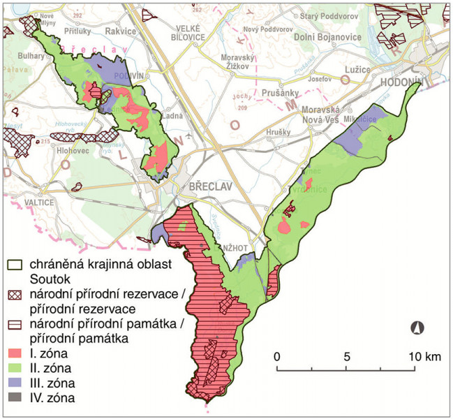 Mapa vymezení CHKO Soutok včetně zonace. Orig. J. Vrba