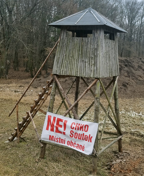 Vyjádření nesouhlasu s vyhlášením CHKO Soutok při návštěvě prezidenta epubliky Petra Pavla v únoru 2025. Foto P. Pešout