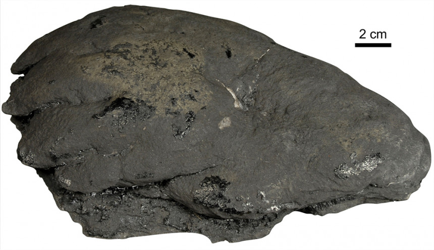 V paleogénu do Arktidy pronikli pantodontní savci. Šlo o robustně stavěné, až 3 m dlouhé býložravce, obývající pralesní močálovitá prostředí, podobně jako dnešní hroši. Z eocénu Ellesmerova ostrova je na základě kosterních pozůstatků prokázán rod Coryphodon. Analýza zubů ukázala, že coryphodoni žili v Arktidě celoročně a během polární noci se živili opadankou, dřevem a stálezelenými jehličnany. Na Západním Špicberku byly nalezeny fosilní stopy připisované dalšímu pantodotnovi rodu Titanoides. Pandotonti se skrze Arktidu šířili mezi Severní Amerikou a Evropou, čímž potvrzují existenci suchozemského spojení mezi oběma pevninami počátkem paleogénu, tzv. De Geerovu trasu. Vyobrazená stopa je přirozený výlitek šlépěje, který byl objeven horníky na rozhraní uhelné sloje a pískovcové vrstvy paleocenního stáří v dole Gruve 7 u Longyearbyenu. Zvíře ji zanechalo v bahně při průchodu bažinatým pralesem podél pobřeží mořské laguny. Šlépěj je uložena ve sbírkách Svalbardského muzea. Foto: Svalbard museum, sbírka fotografií, s laskavým svolením