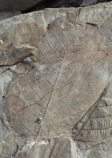 Pro polární listnatý opadavý les paleocénu a raného eocénu Arktidy byly charakteristické velké listy krytosemenných stromů. Listy bukovitého stromu rodu Ushia. Délka největšího listu 20 cm. Ostrov Západní Špicberk. Foto M. Hanáček