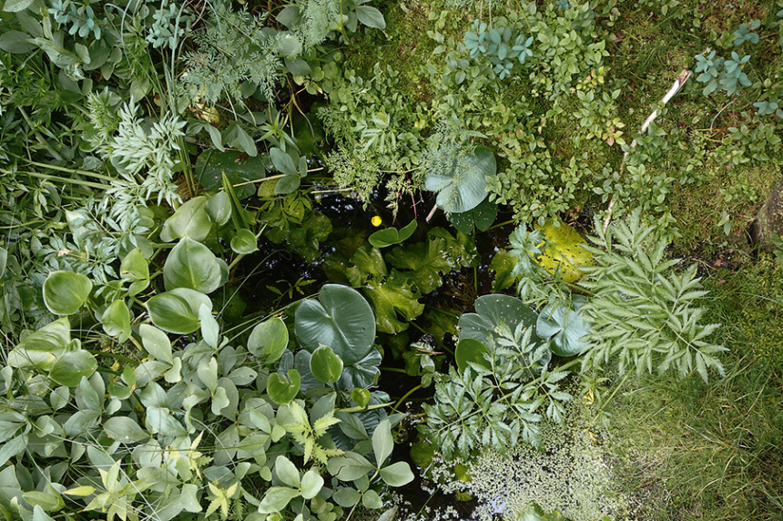 V tůňkách ve zrašelinělém okraji tzv. sucharů, tedy chudých dystrofních jezírek, rostou druhy, které u nás známe spíše z bažinatých míst a rybničních okrajů – ďáblík bahenní (Calla palustris), vachta trojlistá (Menyanthes trifoliata), zábělník bahenní (Comarum palustre) nebo rozpuk jízlivý (Cicuta virosa). Foto A. a T. Kučerovi