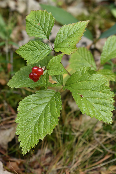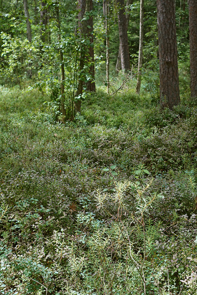 Wigiersky Park Narodowy – v podrostu smíšených lesů zde na morénách roste kombinace acidofilních i bazifilních druhů, hojný je např. ostružiník skalní (Rubus saxatilis, na obr.) v podrostu brusnic (Vaccinium spp.) i hájových druhů dubohabřin. Foto A. a T. Kučerovi