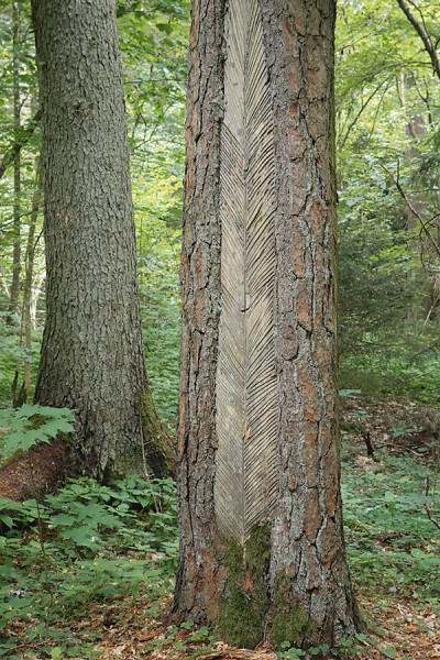 Výstavky starých borovic lesních (Pinus sylvestris) ve smíšených lesích, se stopami po smolaření, tedy těžbě smůly. Foto A. a T. Kučerovi