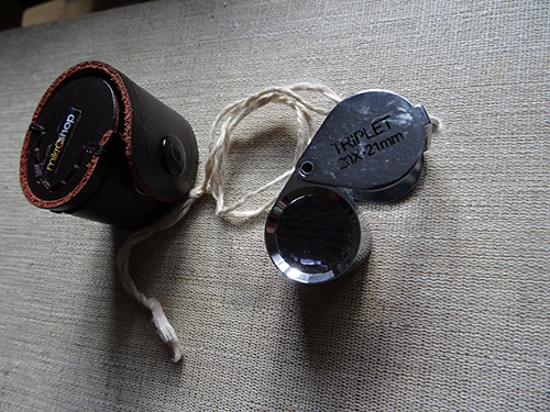 Botanická lupa je opatřena poutkem, díky kterému ji můžeme nosit zavěšenou kolem krku a předejít tak ztrátě. Foto K. Šumberová