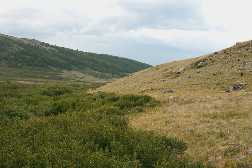 Současnou analogii středoevropského glaciálního ekosystému – stepotundry – najdeme na jižní Sibiři. Údolí Žumali. Foto P. Hájková