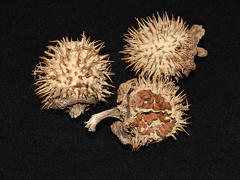 Semena durmanu neškodného (Datura innoxia) o velikosti 4–5 mm ve vodě neplavou a rychle klesají na dno. Tobolky se semeny, které jsou 3,5 až 4 cm velké, se naopak nad hladinou udrží téměř 14 dní, postupně se ve vodě rozkládají a uvolňují semena. Druh je původní v Texasu a Mexiku. Foto J. Moravec