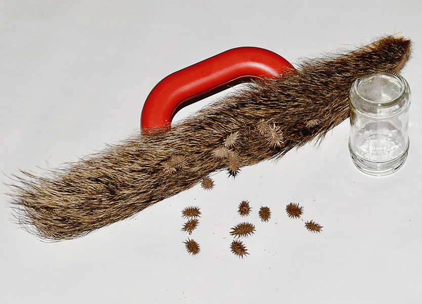 Rám k měření epizoochorie, pokrytý srstí z prasete divokého. Foto J. Moravec